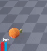 We implemented the HUD so now you can see the cooldown of your jump and the cooldown of the shooting. We also implemented a really simple life system and we made this visible in the hud by adding hearths under the character icon.